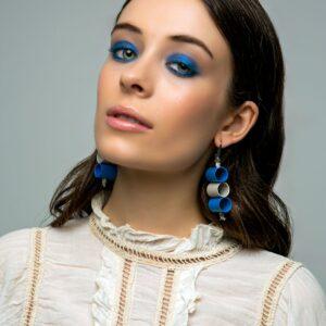 The variety of the color palette on these earrings made of lightweight aluminium cylinders, represent the beauty and minimalism of the aegean islands. Blue, white, beige, azure, the colours of the greek sky and sea. Choose your own version of the greek summer!