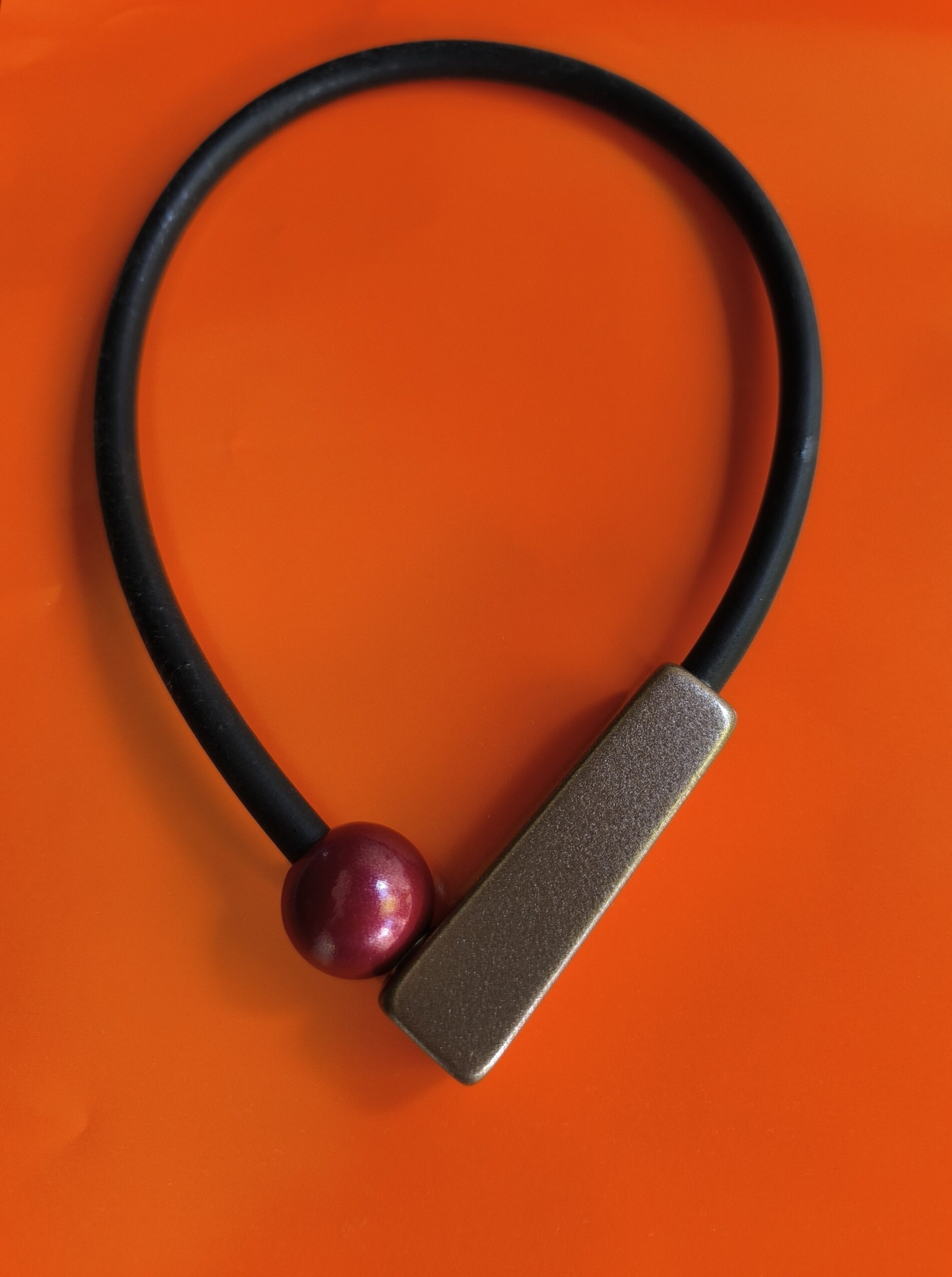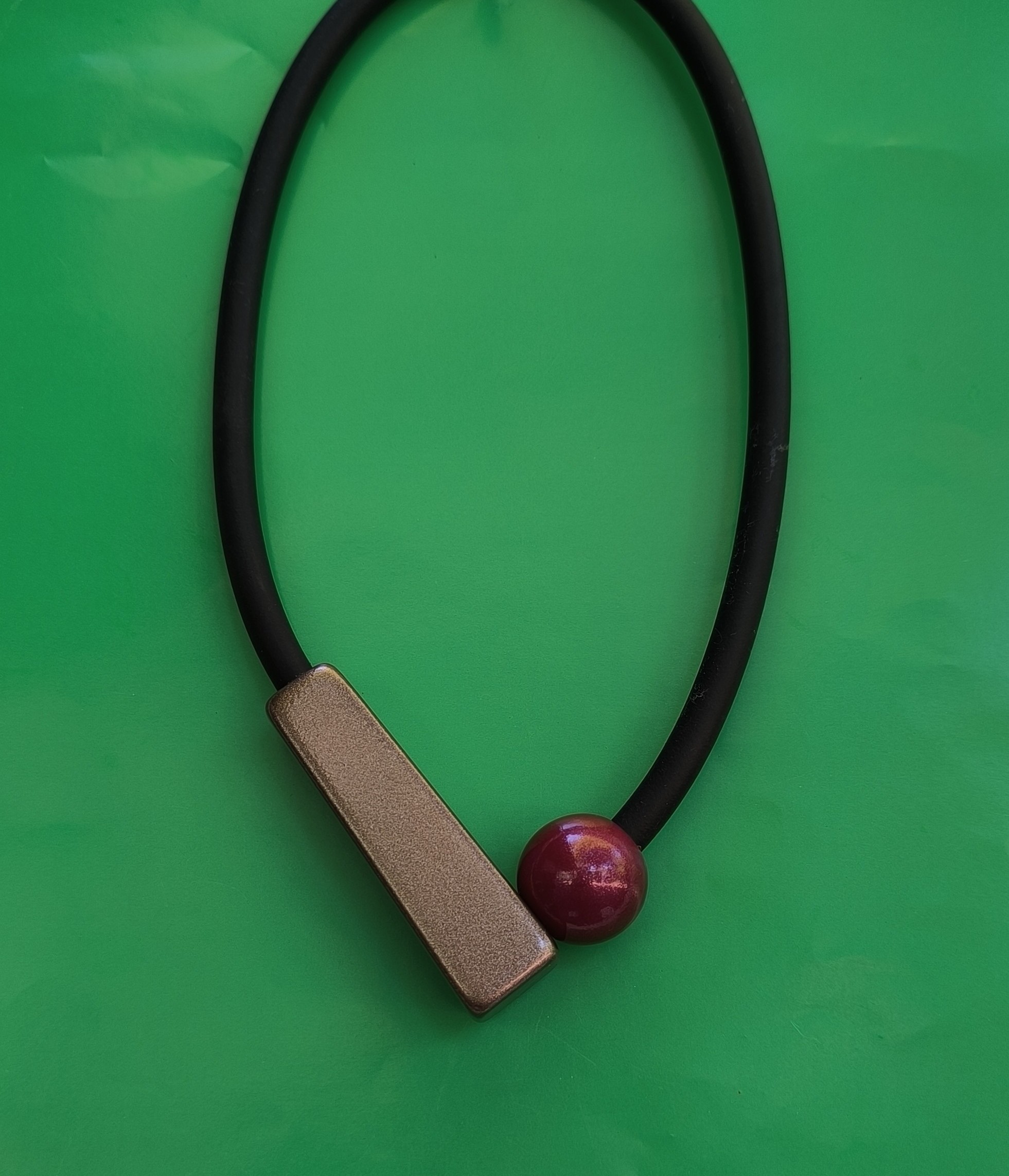 The brushed gold rectangular element pairs beautifully with the light burgubdy bead, creating a warm and refined color harmony. Lightweight and effortless, it elevates everyday looks and adds contemporary flair to special-occasion styling.